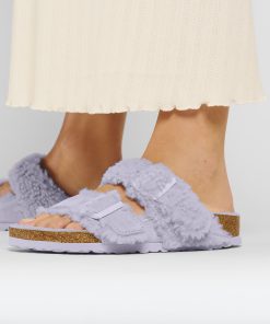 Birkenstock Women’s Sandals Arizona Teddy Split Suede Leather-shearling Purple Fog | Purple Fog