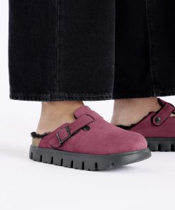 Birkenstock Women’s Shoes Boston Chunky Shearling Suede Leather-shearling Berry Crush | Berry Crush
