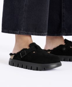 Birkenstock Women’s Shoes Boston Chunky Suede Leather Basalt Gray/ Black | Basalt Gray & Black
