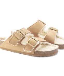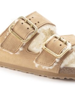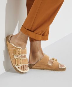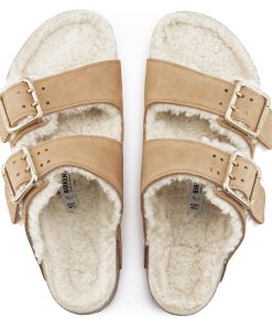 Birkenstock Men’s Sandals Arizona Bold Shearling Nubuck Leather Cognac | Cognac