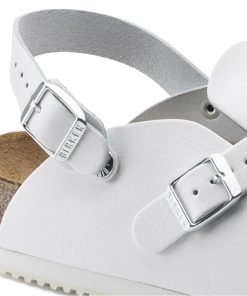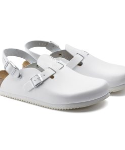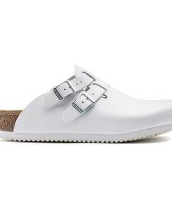 The Kay Super Grip clog is designed for versatility, with on-the-job features that work for you. Featuring a convertible strap that swivels down to provide a secure backstrap or swivels up when you want a more casual style. Its smooth leather upper is durable and easy to clean, perfect for professional environments. With a Super Grip rubber outsole for high traction and a cushioned soft footbed to keep you comfortable through long hours on your feet.