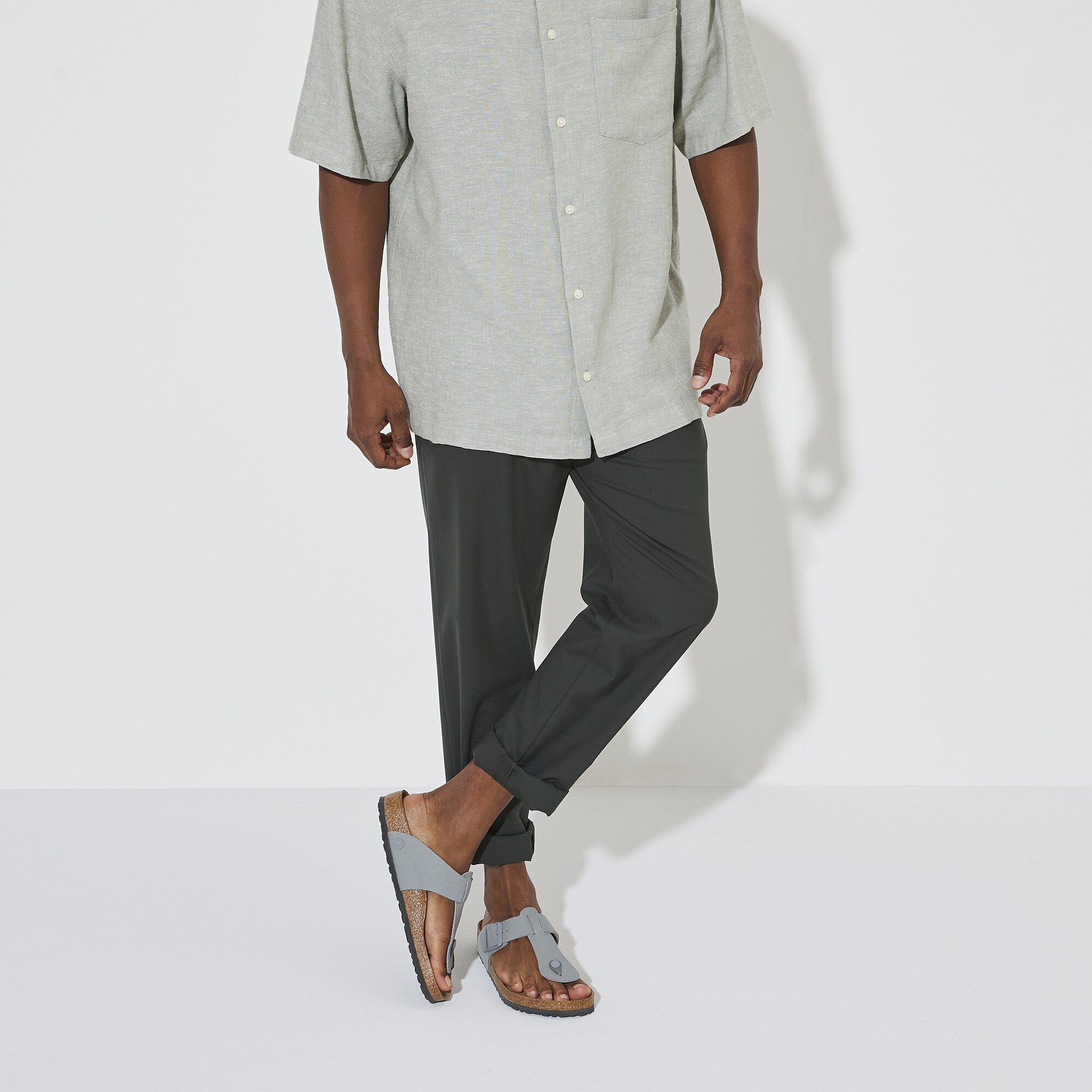The BIRKENSTOCK Medina – a modern thong sandal. The bold straps and side buckle, combine for a fully adjustable fit on the instep. This classic model is now available in a vegan material, featuring a matte finish and a microfiber footbed liner. The upper is made of canvas textile.