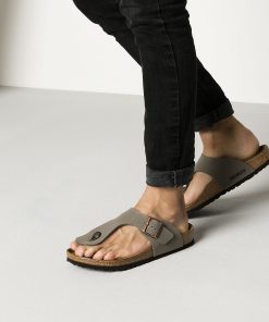The BIRKENSTOCK Ramses is the men’s version of the popular Gizeh thong sandal. The slightly wider strap lends this sandal a strikingly masculine appearance. The upper is made from the skin-friendly, hard-wearing synthetic material Birko-Flor® in a sophisticated nubuck look which boasts a texture and color that could almost be mistaken for real leather.