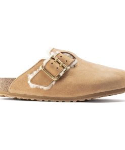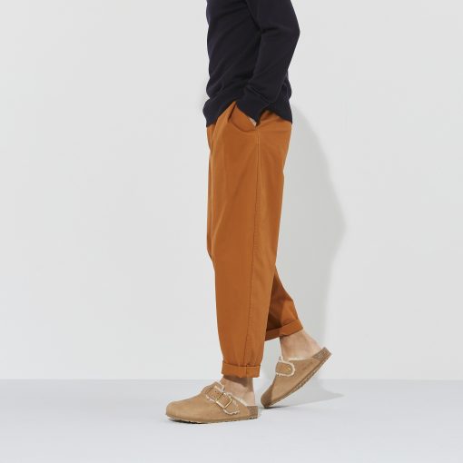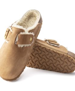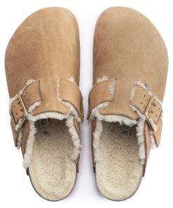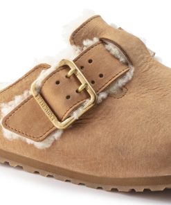 Birkenstock Men’s Shoes Boston Bold Shearling Nubuck Leather Cognac | Cognac