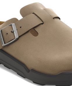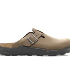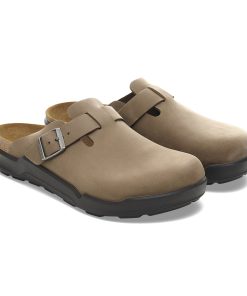 The BIRKENSTOCK Boston is a veritable classic that can easily be worn all year round. It has a legendary status thanks to its sophisticated, individually adjustable design. The sporty Adventure Crosstown version is designed for BIRKENSTOCK fans who are active and looking for an experience. The polyurethane sole is affixed to the footbed in two layers and therefore offers maximum flexibility, grip, and durability. The upper is made from extra thick, oiled nubuck leather with an open-selvage finish.