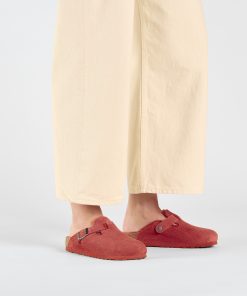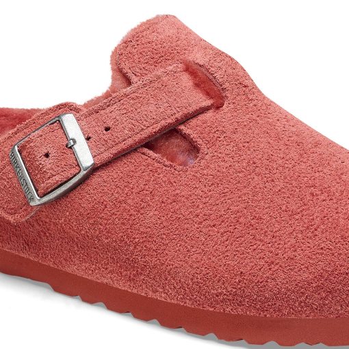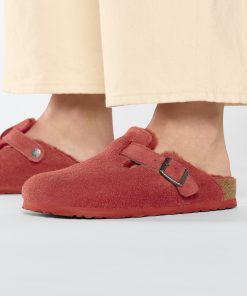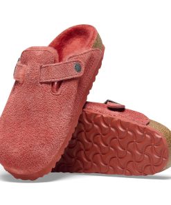 Birkenstock Men’s Shoes Boston Shearling Suede Leather Sienna Red | Sienna Red