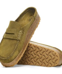 The BIRKENSTOCK Naples — a brand new clog for men features a mocassin style construction for ultimate comfort with a unique stitching for a classic look. The Naples is designed with a cushioning midsole for a comfortable fit and a rubber grip sole for added traction. The upper is made from especially soft suede.