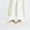 - Details: two straps, each with a big, individually adjustable metal pin buckle; color-coordinated footbed