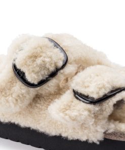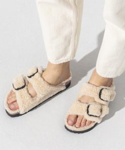 The iconic Arizona two strap sandal, now available in all over teddy shearling. Extra cozy, extra comfortable with amplified big buckles for a bold style.