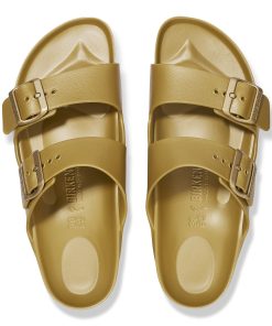 The legendary two-strap design from BIRKENSTOCK – the Arizona. Modeled on the cork original, this sandal is made from ultra lightweight and highly flexible EVA. These sandals are shock absorbing, waterproof, and skin-friendly. Wear them at the beach, in the garden, or around the gym and after workouts. It’s the perfect addition to your classic BIRKENSTOCK sandals.