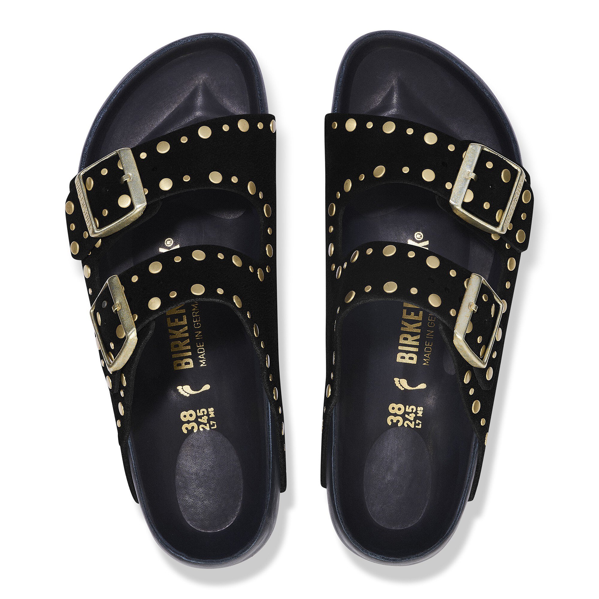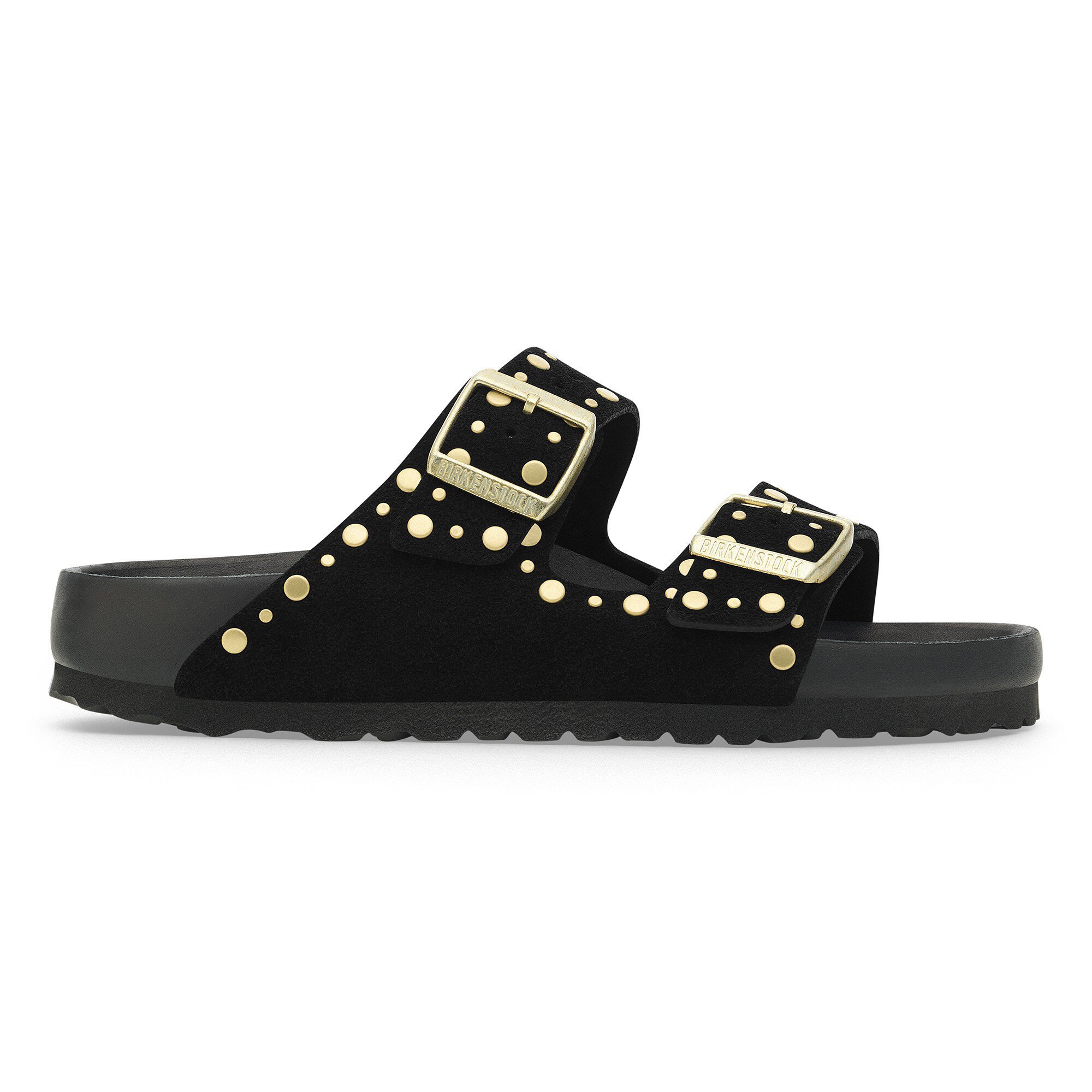 An icon of timeless design and legendary comfort, the Arizona sandal has been defining style since 1973. Metallic rivets stud its classic suede upper in an eyecatching design, precisely placed to leave the underside smooth for comfortable wear. It rests on an Exquisite footbed fully lined in smooth leather for a supportive, luxe-to-the-touch feel.