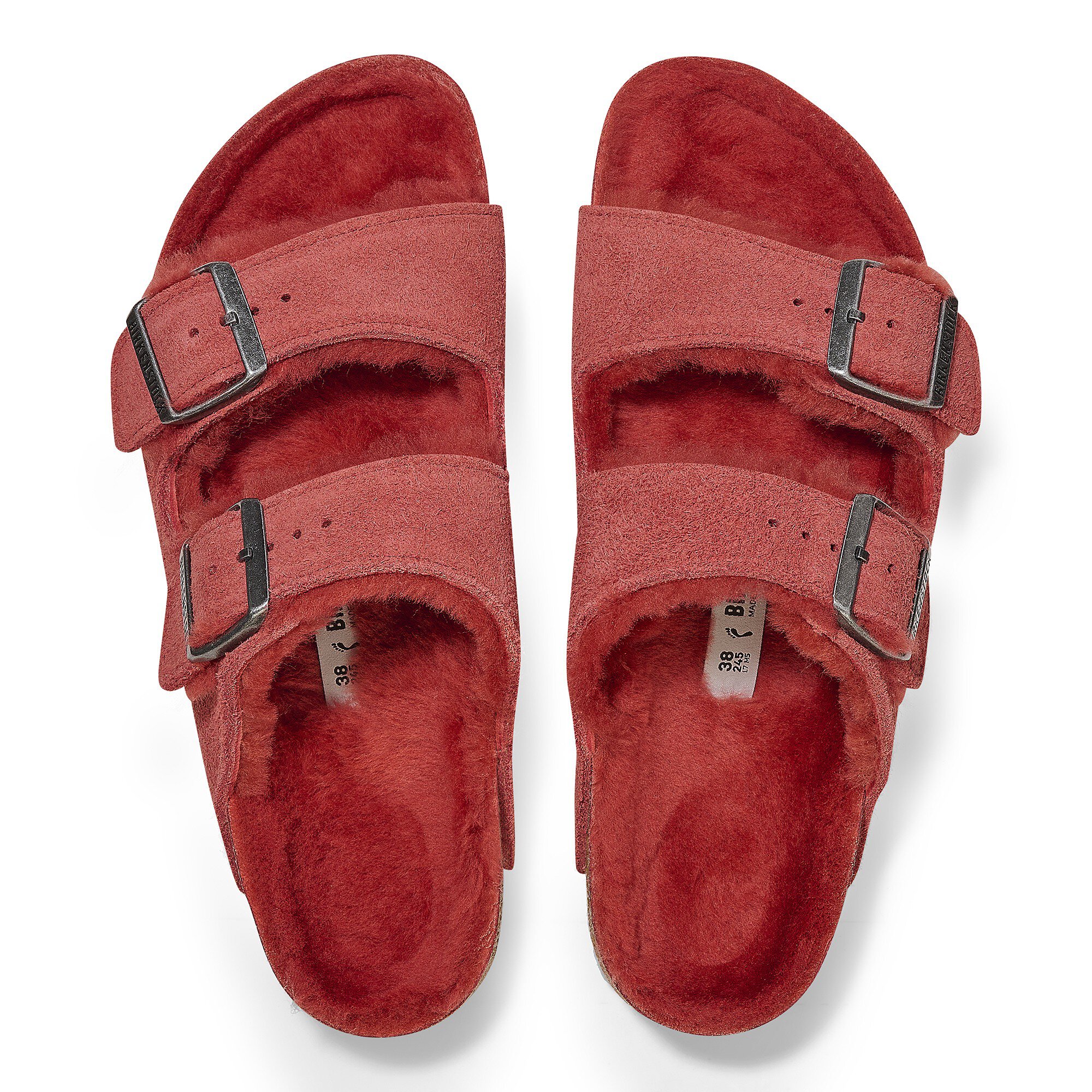 Birkenstock Women’s Sandals Arizona Shearling Suede Leather Sienna Red | Sienna Red