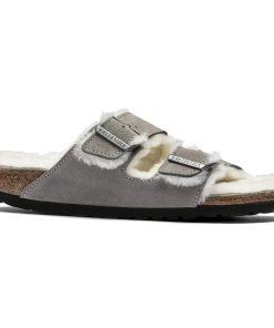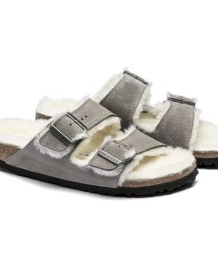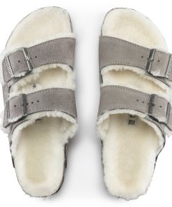 Birkenstock Women’s Sandals Arizona Shearling Suede Leather Stone Coin | Stone Coin