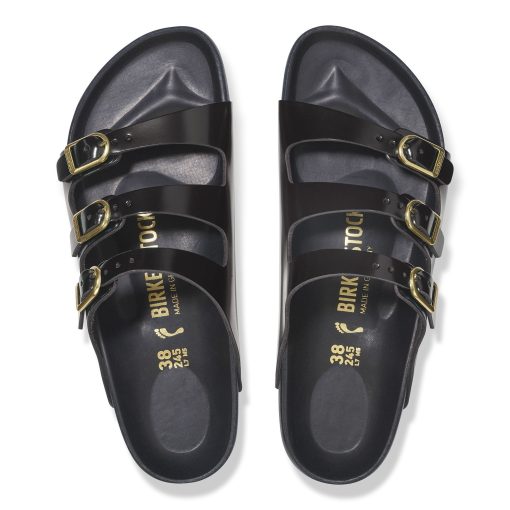 Birkenstock Women’s Sandals Florida Exquisite Natural Leather Patent High Shine Black | High Shine Black