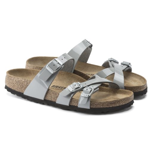 An elegant new model – the Franca – designed with slim, stylish crisscrossed straps. The upper is made from the skin-friendly, hard-wearing synthetic material Birko-Flor® with a shiny patent coating.