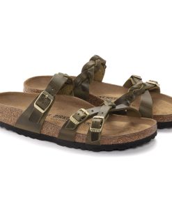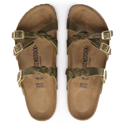 Birkenstock Women’s Sandals Franca Braided Oiled Leather Olive Green | Olive Green