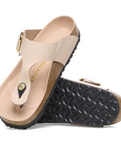 The Gizeh sandal refines the fit with legendary comfort and elegant detailing. This design doubles the buckle and ups the shine with gleaming, oversized hardware and a glossy finish. The style is grounded in our original contoured footbed, designed to shape to you for the ultimate in custom support.