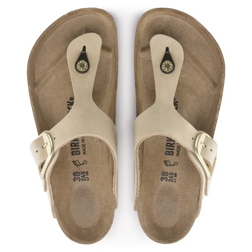 Meet the brand new Gizeh Big Buckle. This classic thong sandal gets a fresh update with an elegant amplified buckle. Feminine style that’s comfortable and easy to wear. The footbed is lined with a soft suede & the upper is made from high-quality, nubuck leather.