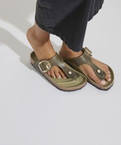 Meet the brand new Gizeh Big Buckle. This classic thong sandal gets a fresh update with an elegant amplified buckle. This feminine style that’s comfortable and easy to wear. The lining of the footbed is covered with soft smooth leather and matches the shoe in color. The upper is made from extra thick, smooth leather and features an open-selvage finish.