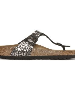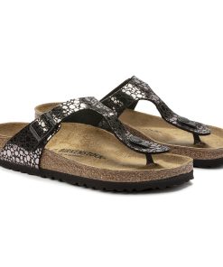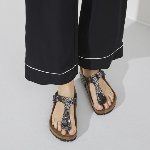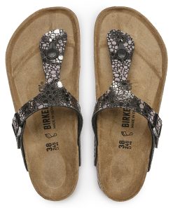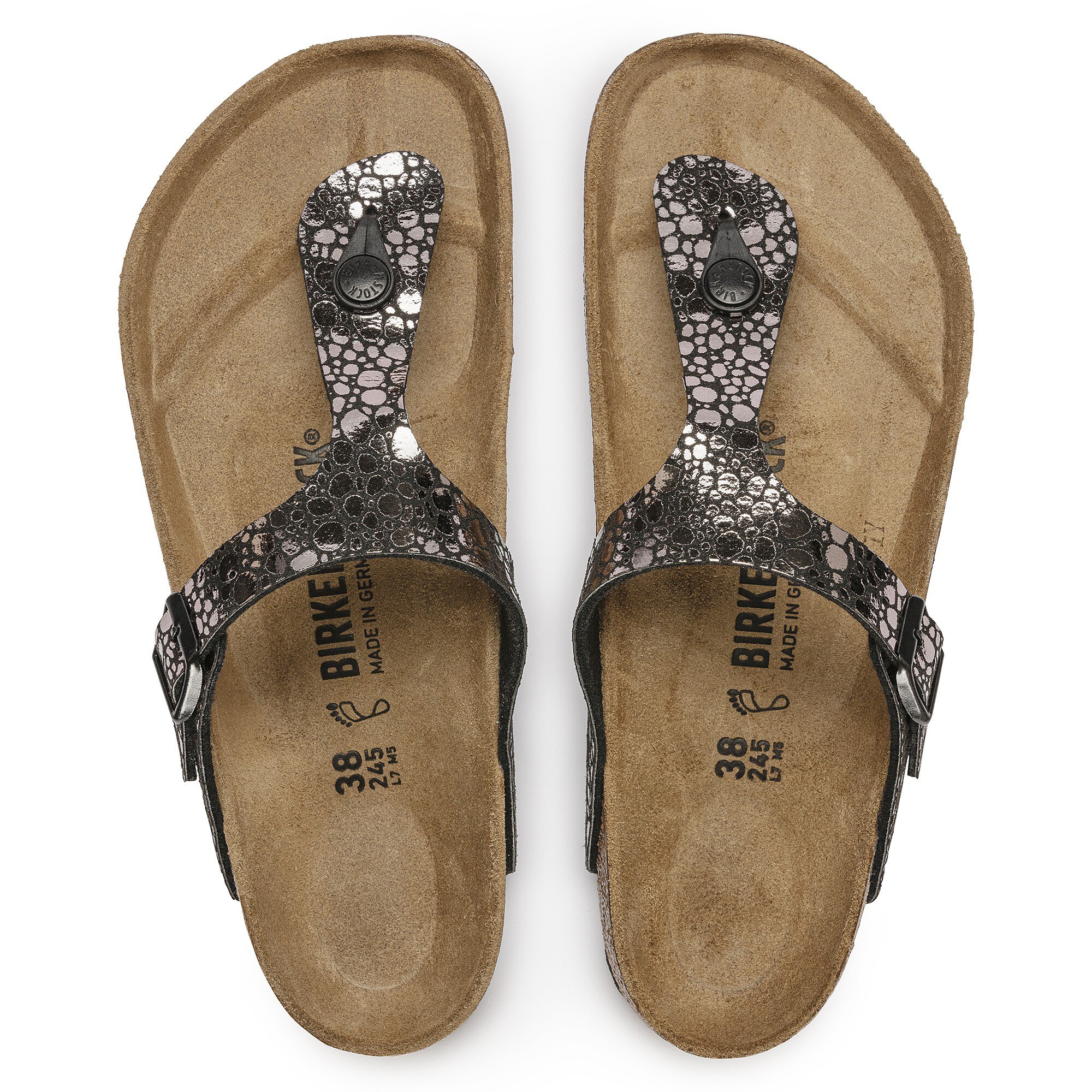 The Gizeh – a modern thong sandal from BIRKENSTOCK. The Gizeh is a proven classic with signature support and a refined, minimalist style. As part of our Metallic Stones collection, this limited edition style features soft microfiber uppers with a stunning metallic pebble overlay. The contrasting matte and shiny finshes give a sophistacated tonal depth to the material.