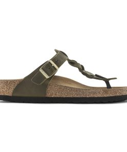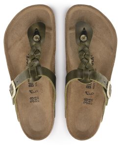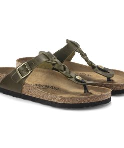 Birkenstock Women’s Sandals Gizeh Braided Oiled Leather Olive Green | Olive Green