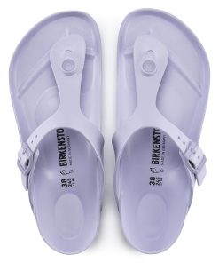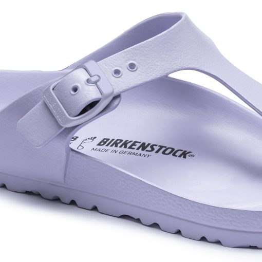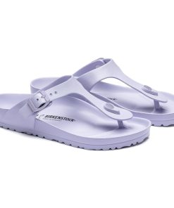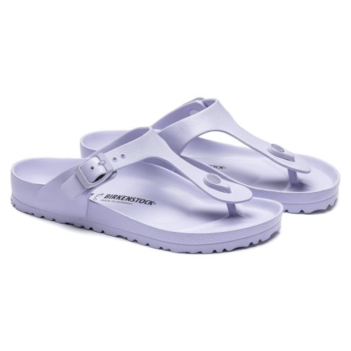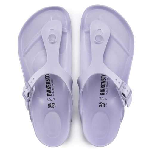The BIRKENSTOCK Gizeh is our classic thong sandal. Modeled on the cork original, this sandal is made from ultra lightweight and highly flexible EVA. These colorful sandals are shock-absorbent, waterproof, and skin-friendly. Wear them at the beach, in the garden, or in wellness and spa areas. It’s the perfect addition to your classic BIRKENSTOCK sandals.