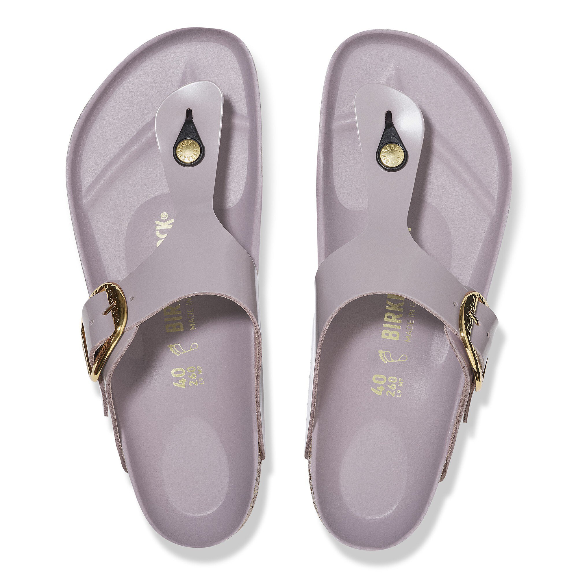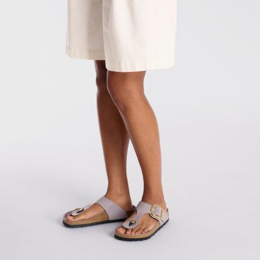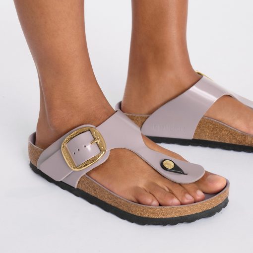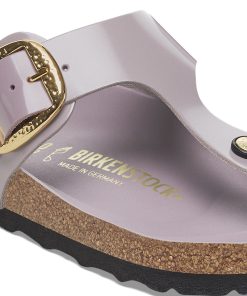 Birkenstock Women’s Sandals Gizeh Hammered Big Buckle Natural Leather Patent High Shine Faded Purple | High Shine Faded Purple