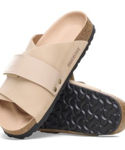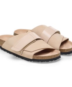 The Kyoto slide maximizes your comfort with its minimalist design. This season, a high shine hook-and-loop strap creates a patently perfect fit over smooth nubuck leather. It’s all grounded in our contoured footbed, designed to shape to you with wear for the ultimate in support.
