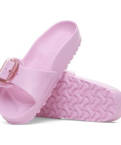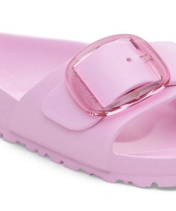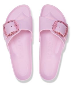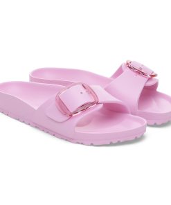 This is a new and modern interpretation of the BIRKENSTOCK classic Madrid. This version features our popular Big Buckle made from a stainless synthetic material and makes an impression with its durability and minimalist design. Modeled on the cork sandal, it is made from the ultra-lightweight and highly flexible synthetic material EVA. The high-quality, odor-neutral EVA has been tested for harmful substances and combines numerous positive attributes: it is very light, highly elastic, shock-absorbent, water-resistant, and skin-friendly.