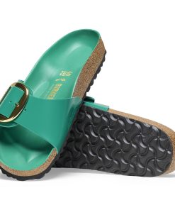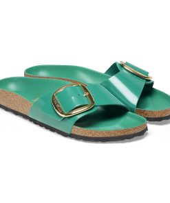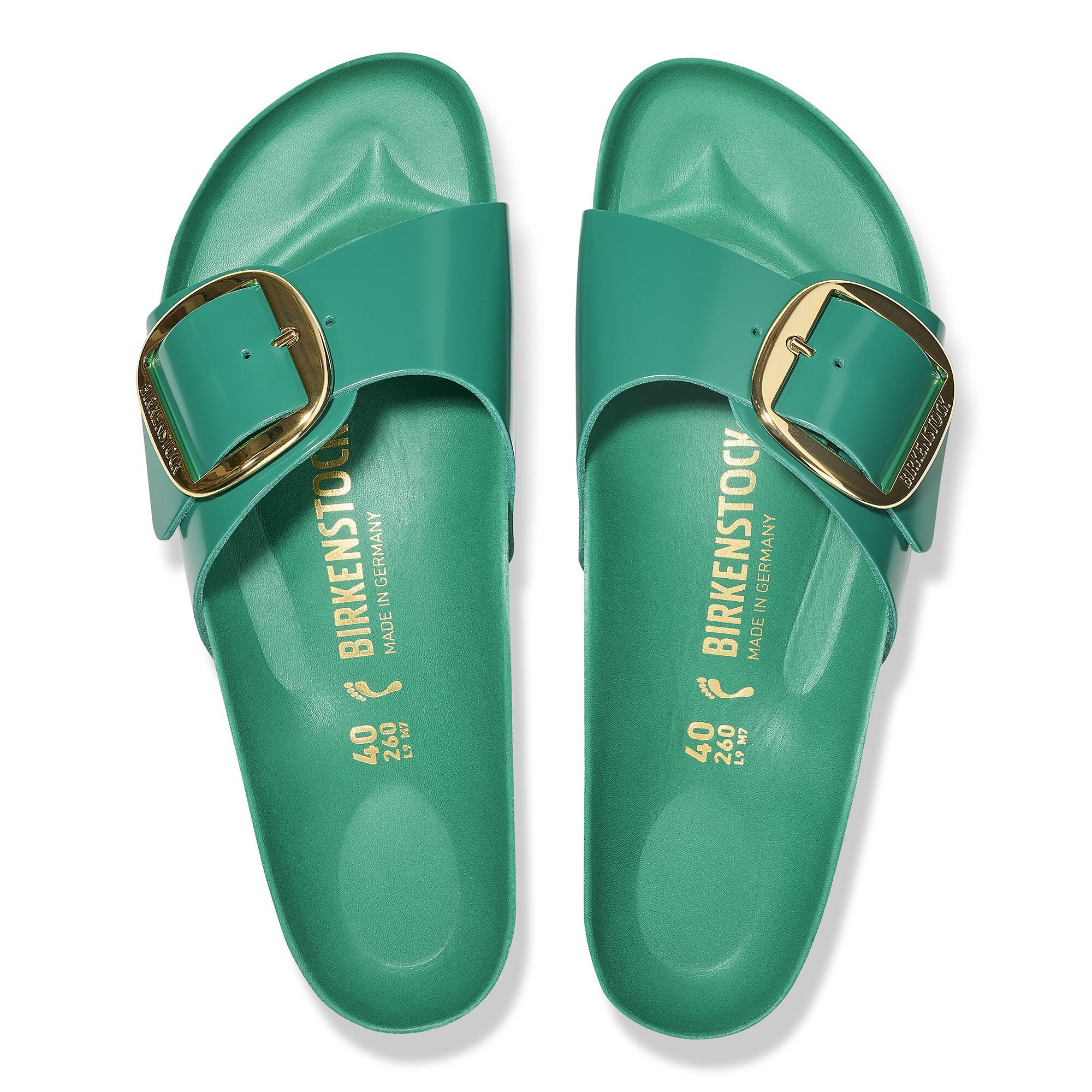 Birkenstock Women’s Sandals Madrid Big Buckle Natural Leather Patent High Shine Digital Green | High Shine Digital Green