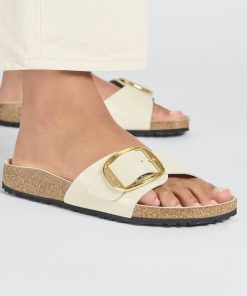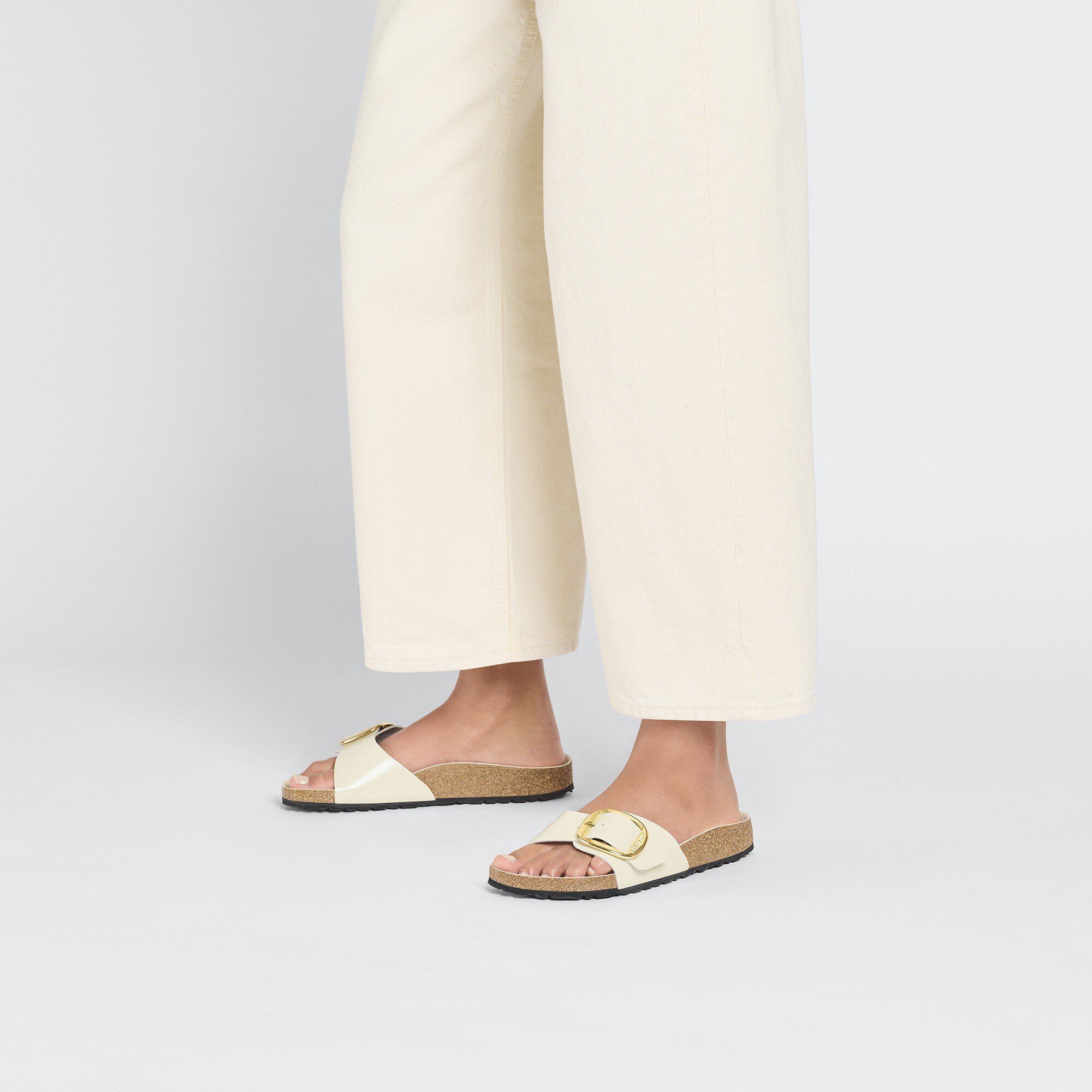 Birkenstock Women’s Sandals Madrid Big Buckle Natural Leather Patent High Shine Ecru | High Shine Ecru