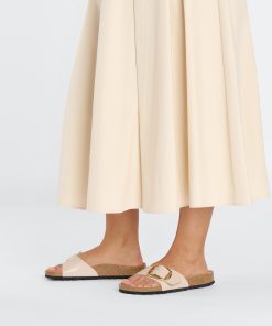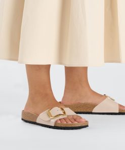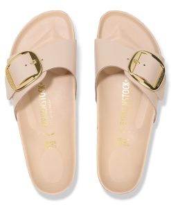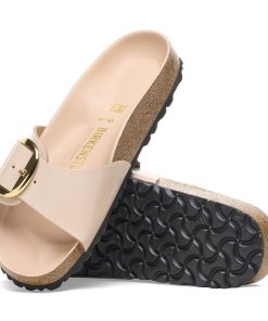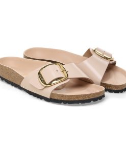 Birkenstock Women’s Sandals Madrid Big Buckle Natural Leather Patent High Shine New Beige | High Shine New Beige