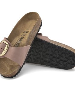 An icon since 1963, the Madrid sandal redefined the slip-on look with a single strap. This season, soft nubuck leather pairs perfectly with a big, gold matte buckle—sized up to make a statement Complete with go-all-day comfort from an original contoured BIRKENSTOCK footbed.