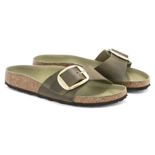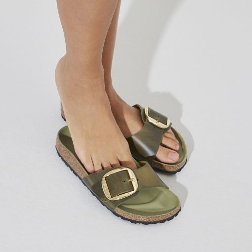 Birkenstock Women’s Sandals Madrid Big Buckle Oiled Leather Olive Green | Olive Green