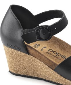 The Mary is a closed-toe wedge from Papillio. Featuring a comfortable, lightweight footbed, and a subtle v-notch on the instep for added ease while walking. The delicate circular buckles are an elegant eye-catcher to dress up any outfit. The upper is made from high-quality, soft natural leather.