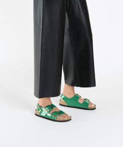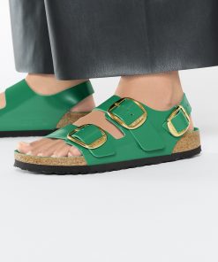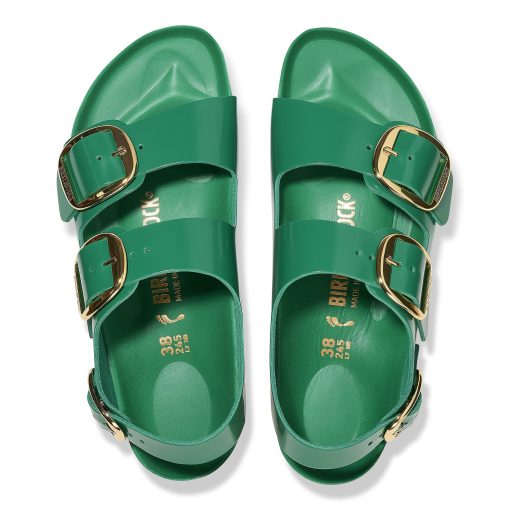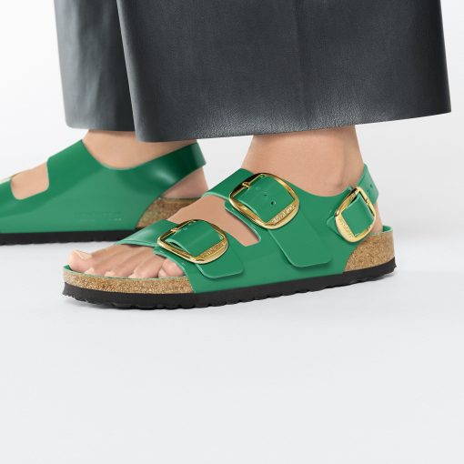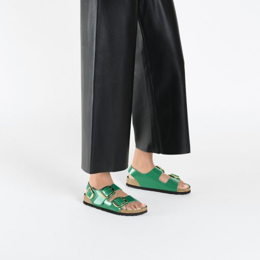 Birkenstock Women’s Sandals Milano Big Buckle Natural Leather Patent High Shine Digital Green | High Shine Digital Green