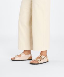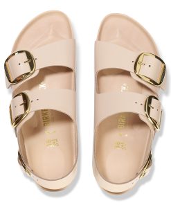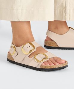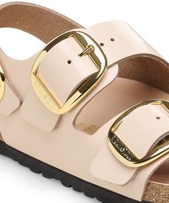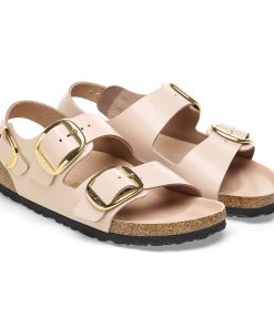 Maximum grip, stability, and a perfect fit! The BIRKENSTOCK Milano offers all of this thanks to its compact design with an ankle strap. The Big Buckle version features a large, elegant pin buckle. The semi-exquisite footbed is fully lined with soft piumato leather, making it exceptionally comfortable. The upper is made from high-quality natural leather with a shiny patent coating.