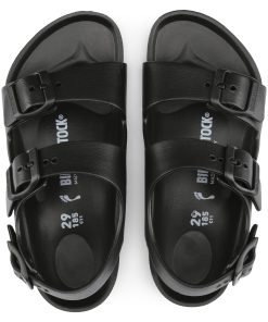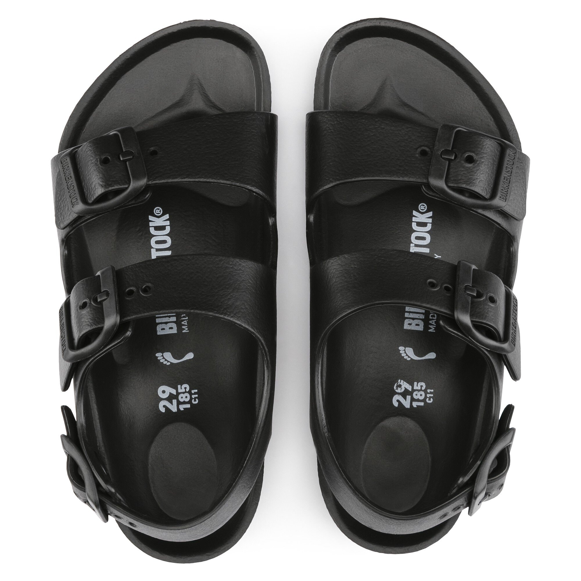 The BIRKENSTOCK Milano – a classic back-strap sandal with functional style for kids. Modeled on the cork original, this back-strap sandal is made from ultra lightweight and highly flexible EVA. These sandals are shock absorbing, waterproof, and skin-friendly. Wear them at the beach, in the backyard, or by the pool. Sandals for all-day play!