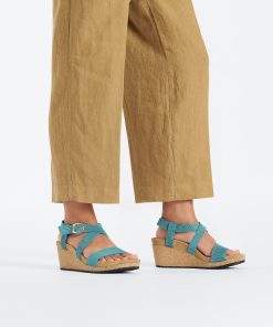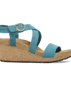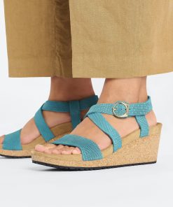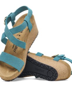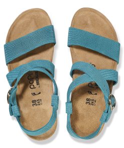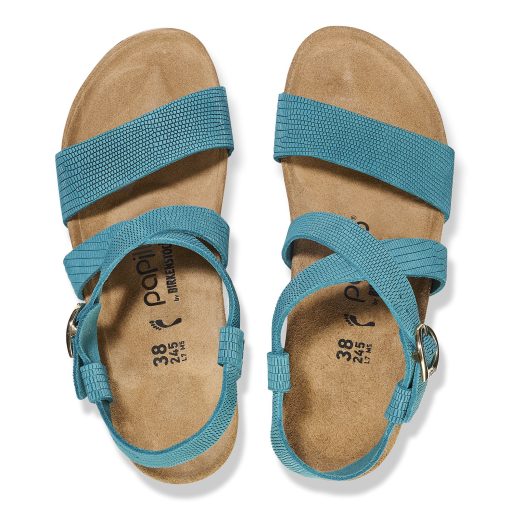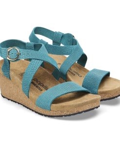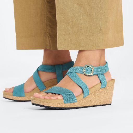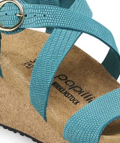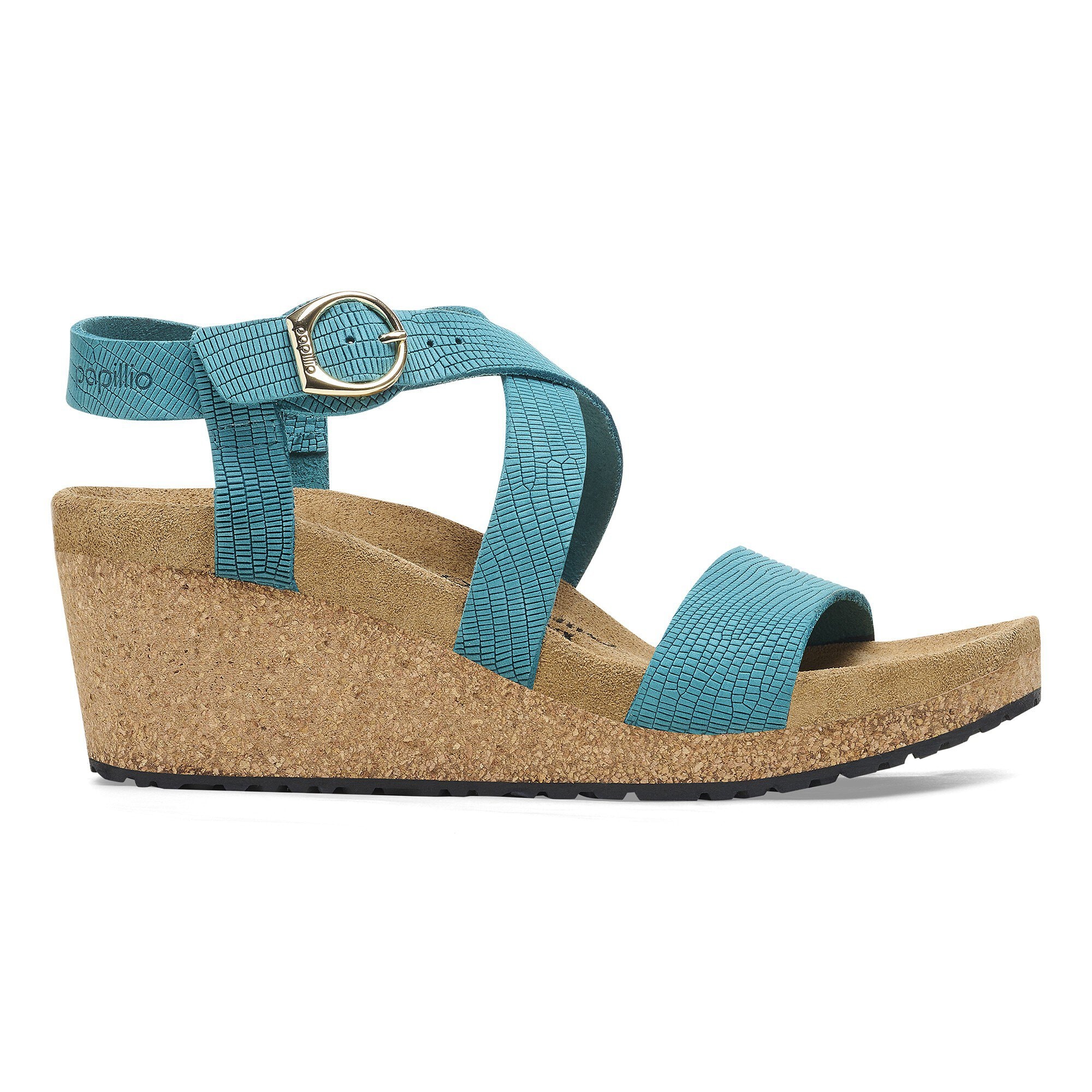 New from Papillio® by BIRKENSTOCK®. The Sibyl wedge levels up with comfort and ease, riding a wave of color that takes inspiration from sea and sky. Embossed leather straps crisscross comfortably across the foot, brought together by an elegant, rounded buckle. Lifted by a classic cork wedge, built around the contoured footbed you love.