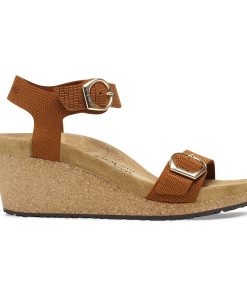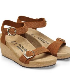 The Soley brings the contoured comforts of the BIRKENSTOCK® footbed together with a cork wedge—designed to level up without adding pressure to the front of your foot. Embossed nubuck leather elevates the details along with elegant, rounded buckles. Level up in comfort.