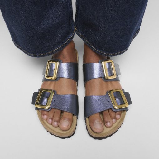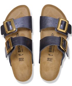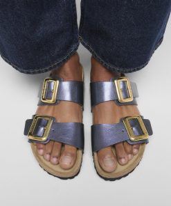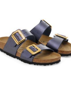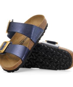 The BIRKENSTOCK Sydney proves that fashion and functionality can go hand in hand. With its two simple straps, it’s a real hit with women who want both high fashion and comfort. This sandal version has a silky sheen finish. The shiny, gently rounded padded buckles are especially eye-catching. The upper is made from the skin-friendly, hard-wearing synthetic material Birko-Flor®.