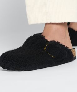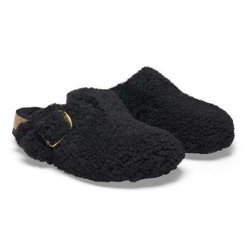 Birkenstock Women’s Shoes Boston Big Buckle Shearling Black Gold | Black Gold