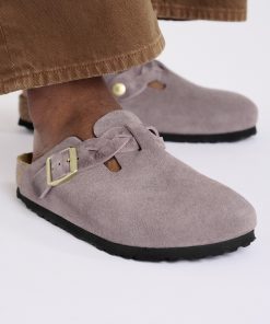 Birkenstock Women’s Shoes Boston Braided Suede Leather Faded Purple | Faded Purple