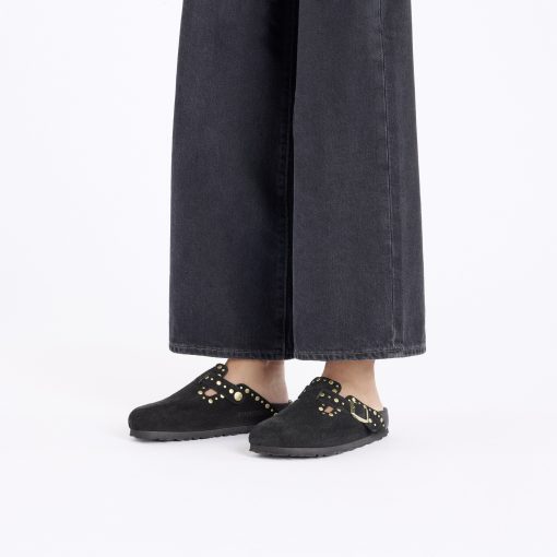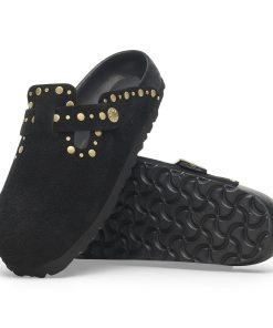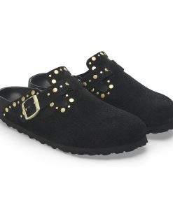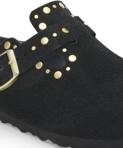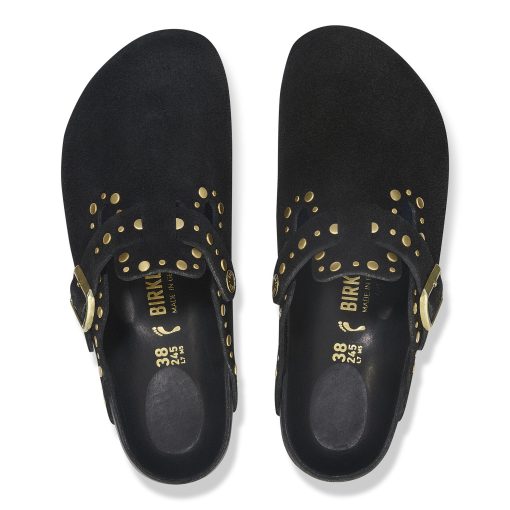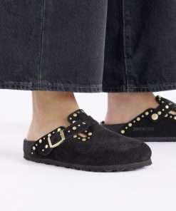 Birkenstock Women’s Shoes Boston Rivets Suede Leather Black | Black
