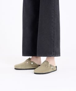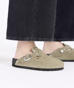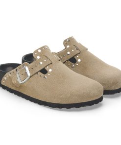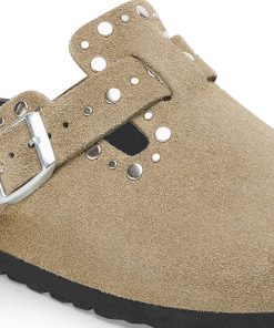 So consistently comfortable, the Boston clog has become a coveted, year-round favorite. Metallic rivets stud its classic suede upper in an eyecatching design, precisely placed to leave the underside smooth for comfortable wear. It rests on an Exquisite footbed fully lined in smooth leather for a supportive, luxe-to-the-touch feel.