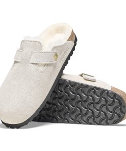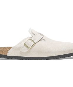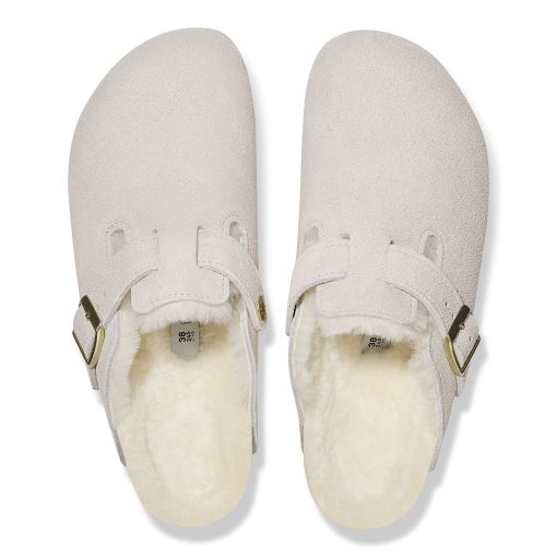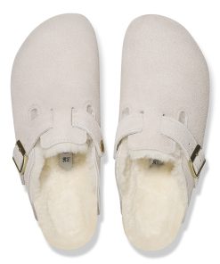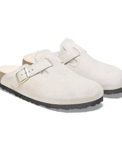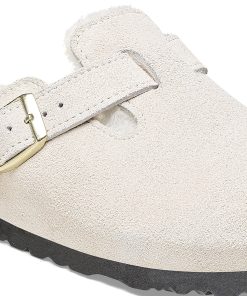 Birkenstock Women’s Shoes Boston Shearling Suede Leather Antique White | Antique White