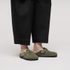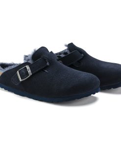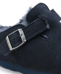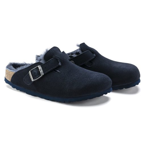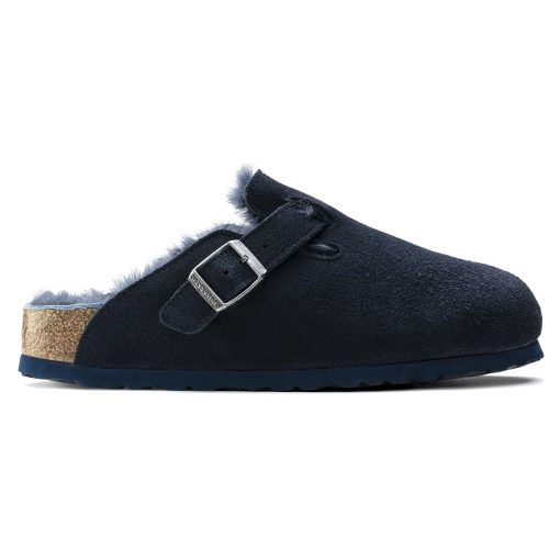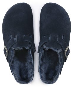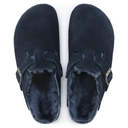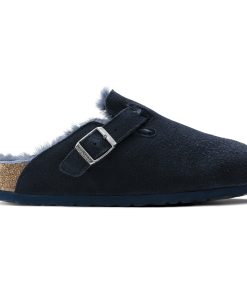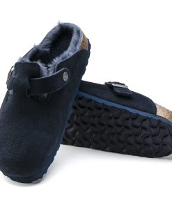 The signature slip-on clog from BIRKENSTOCK – the Boston. A casual-wear staple, perfect year round. Featuring a simple, adjustable design and contoured cork footbed that forms to the shape of the foot, the Boston is a timeless and perennial favorite. This classic model comes in an especially cozy version with genuine shearling lining the footbed and the upper. The perfect shoe for cozy winter evenings! The upper is made from soft suede.