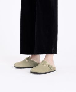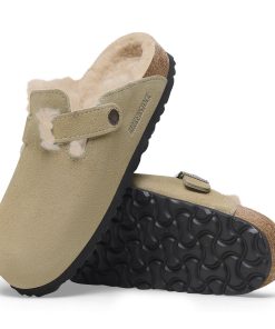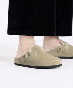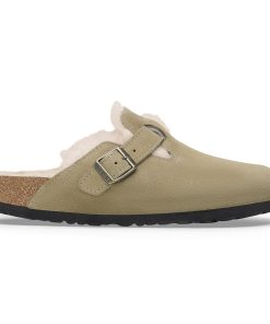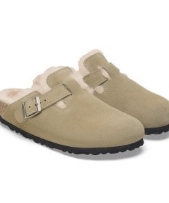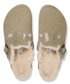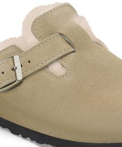 Birkenstock Women’s Shoes Boston Shearling Suede Leather Taupe | Taupe