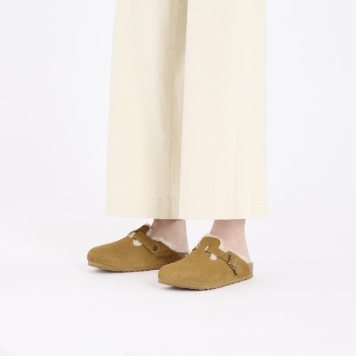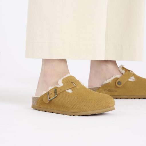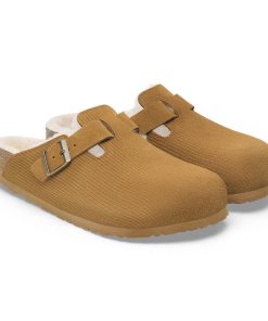 Birkenstock Women’s Shoes Boston Teddy Shearling Suede Leather-shearling Corduroy Cork Brown | Corduroy Cork Brown