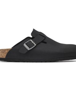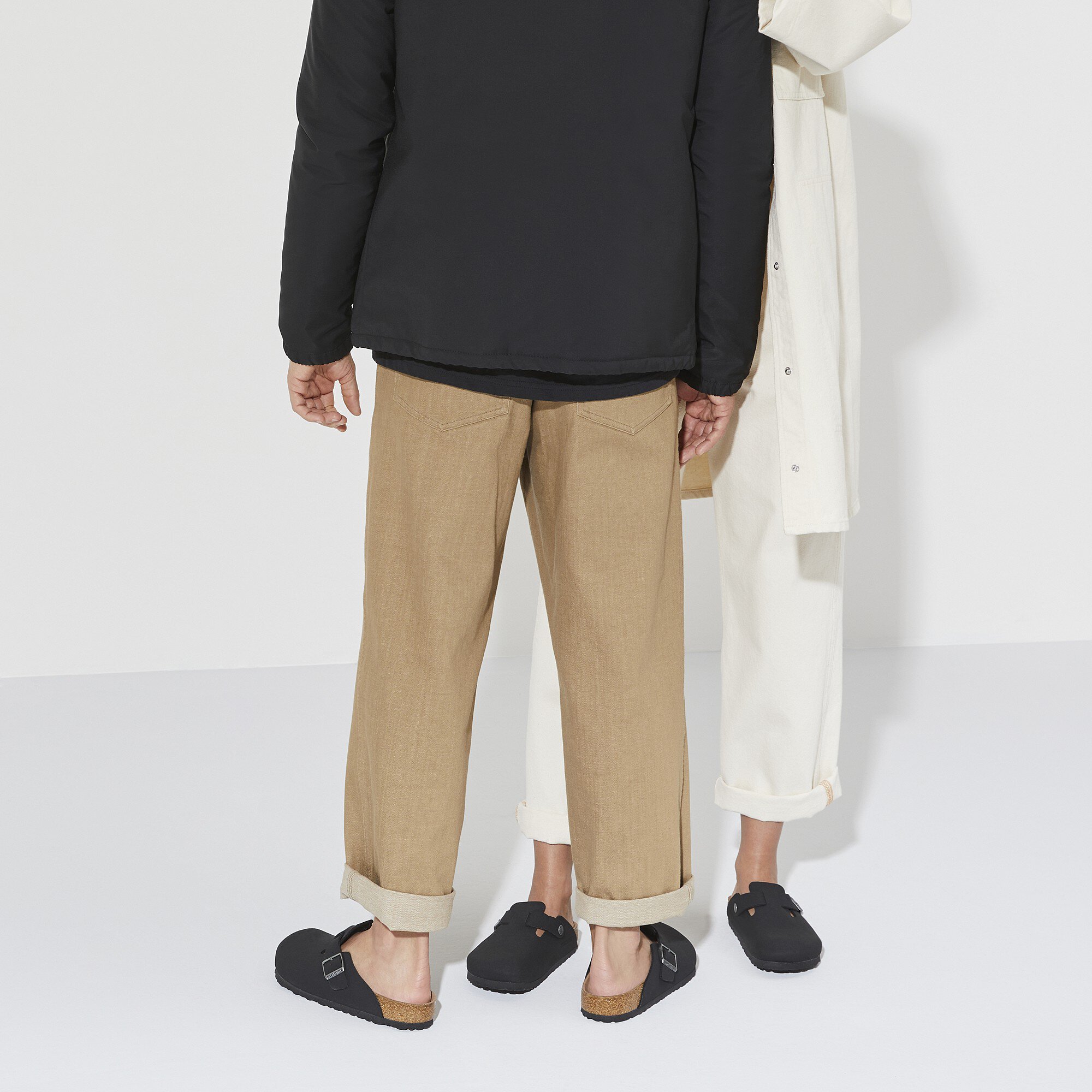 The signature slip-on clog from BIRKENSTOCK – the Boston. A casual-wear staple that is perfect all year round with a simple, adjustable design and contoured cork footbed that forms to the shape of your foot. The color-coordinated outsole rounds off the shoe’s look of sophistication. Available in vegan materials including an upper made from the skin-friendly, hard-wearing synthetic material, Birkibuc.